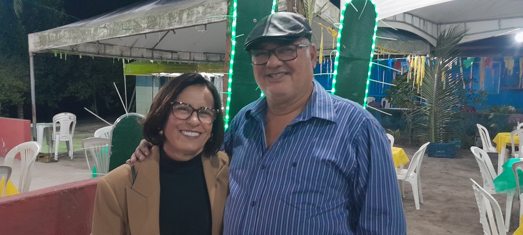 Empresário Roberto e esposa valorizando a cultura nordestina apoiando o 1º Baile das Tradições Nordestinas.