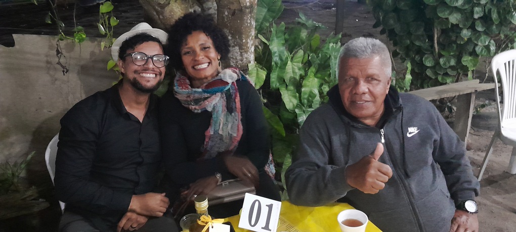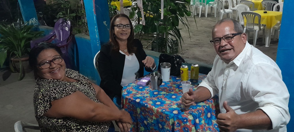 Eunir Carvalho, assistente social, Ariston Pinheiro, empresário e vereador Jucélio Silva, parceiro, proprietário do Sitio Nova Aliança e benfeitor e condutor do Projeto Dia Feliz, ação social que assiste mais de 3 mil pessoas, incluindo futebol, educação, cultura e bem-estar para a região da Zona Leste de Teixeira de Freitas e distritos.