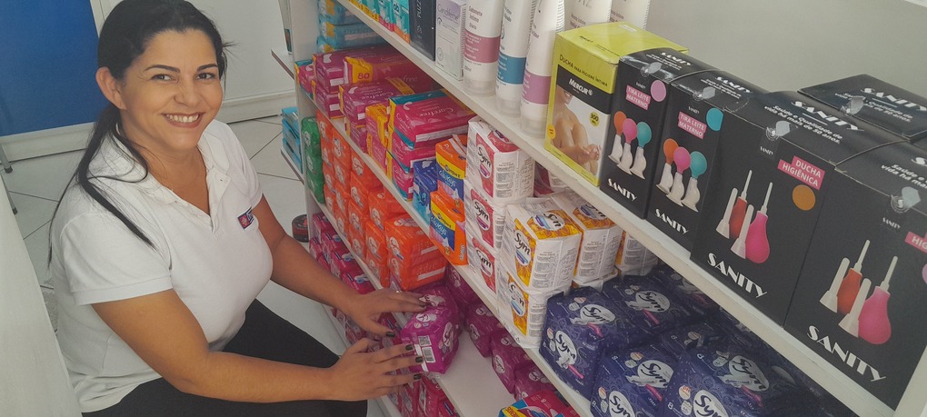 Ela é completa porque faz um atendimento super – especial, em parceria com o Bradesco ela atende aposentados ao fazerem saques, depósitos, atende com recarga de celular, IPVA, conta de luz, de água. Na loja da Av. São Paulo trabalha como farmácia popular, com receita e CPF retira medicamentos: pressão, glicose, etc.