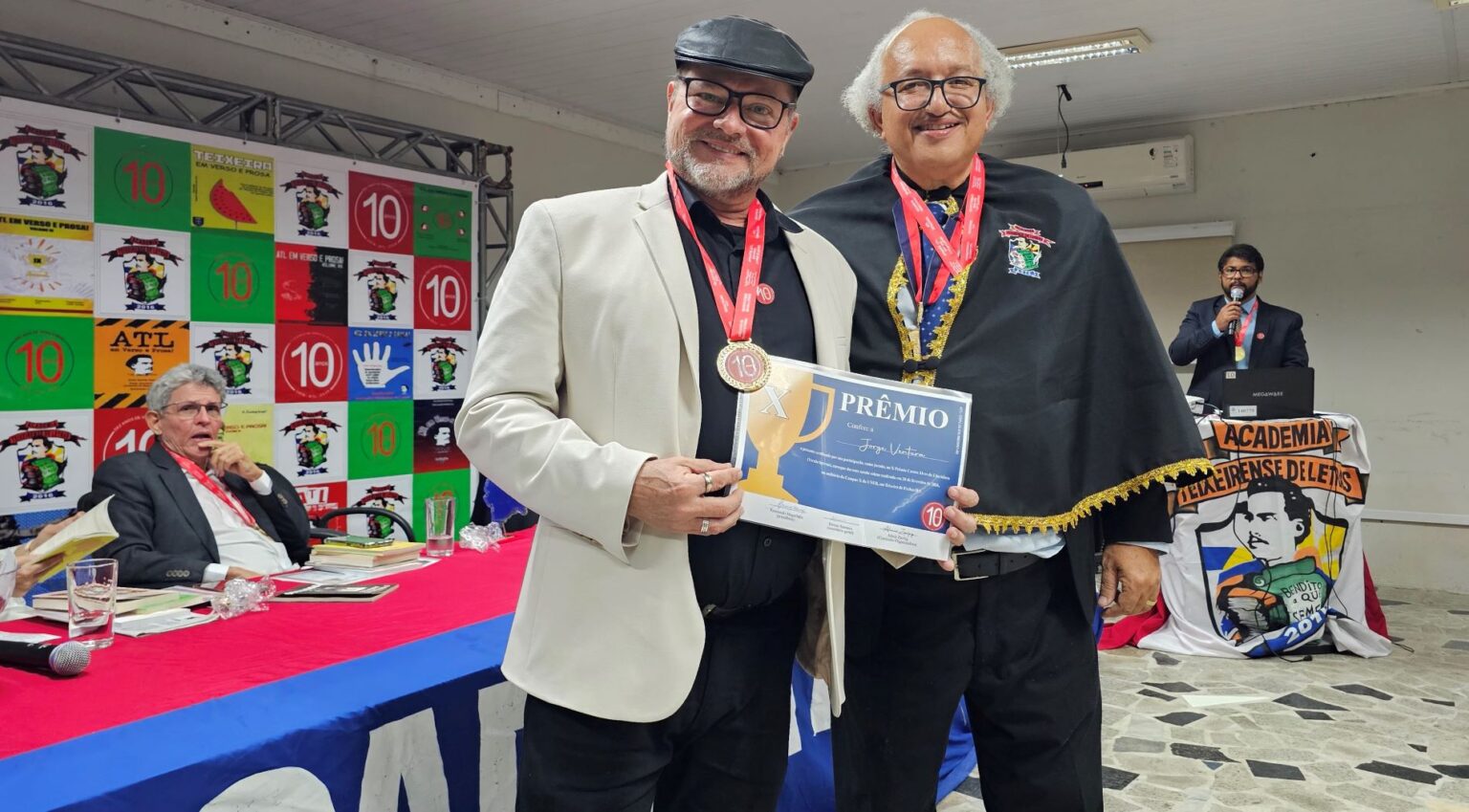 O escritor Jorge Ventura, presidente da Associação Profissional de Poetas no Estado do Rio de Janeiro, foi um dos principais homenageados da noite. O evento também contou com a presença de Clébio Rodrigues, presidente do Conselho Municipal de Cultura, que recebeu a Medalha dos 10 Anos da ATL em reconhecimento às suas relevantes contribuições à instituição.