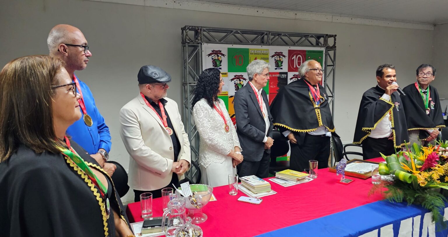 A cerimônia foi aberta com o discurso do presidente Raimundo Magalhães, que declarou oficialmente iniciados os trabalhos da noite, destacando a trajetória da ATL como guardiã da memória literária do extremo sul baiano e como espaço de resistência cultural e produção intelectual. Em seguida, ocorreu a outorga da Medalha dos 10 Anos da ATL aos confrades e confreiras da instituição, simbolizando o reconhecimento à dedicação e ao compromisso daqueles que ajudaram a consolidar a Academia ao longo de sua primeira década de existência.