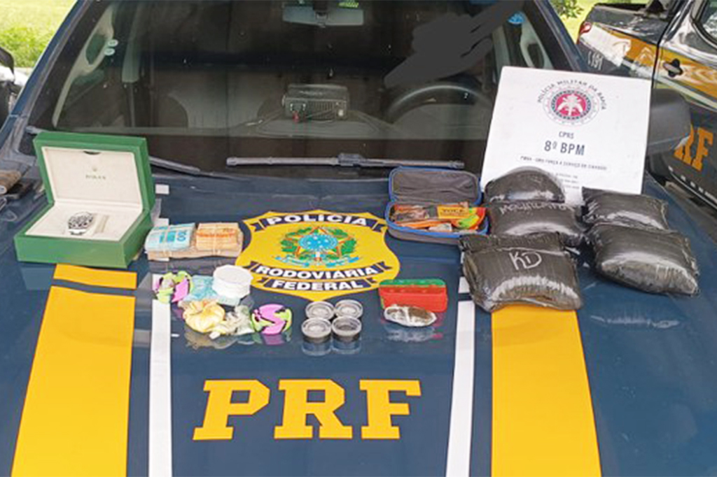 Um flagrante de infração de trânsito resultou na prisão de um homem de 27 anos, na tarde de terça-feira (6), no km 745 da BR-101, em Itabela. Ao vistoriarem o veículo, policiais rodoviários federais apreenderam haxixe, ecstasy, cocaína, um relógio Rolex, cartões bancários e mais de R$ 12 mil em dinheiro. O procedimento de abordagem […]