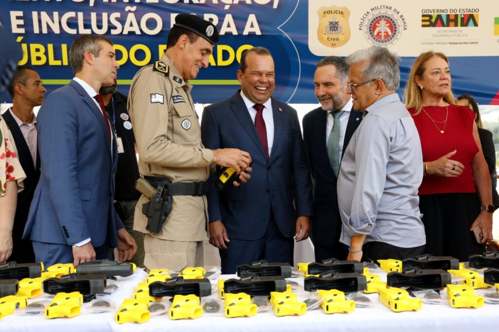 O ato também marcou a entrega de 1.073 kits de armas de incapacitação neuromuscular (tasers), 23.629 espargidores de agente pimenta e 24 veículos para a Polícia Civil da Bahia (PCBA), com investimento total de R$ 6,8 milhões. Os novos equipamentos fortalecem o trabalho das forças de segurança em todo o estado, ampliando a proteção dos agentes e o alcance operacional das corporações.