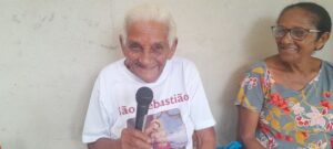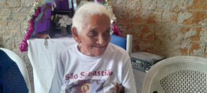 Uma devoção que começou com seu esposo, um devoto de São Sebastião, há mais de 40 anos. Mesmo com o falecimento dele, Delfina não deixou perder a devoção e continua até hoje, convidando as pessoas para festejar, na sua casa. Lá ela, junto com a família, oferece um delicioso almoço, a reza do ofício de Nossa Senhora Imaculada Conceição, entrada da bandeira de São Sebastião, o terço meditado. Delfina vai completar 94 anos, em 2026, mas continua com o mesmo vigor devocional.