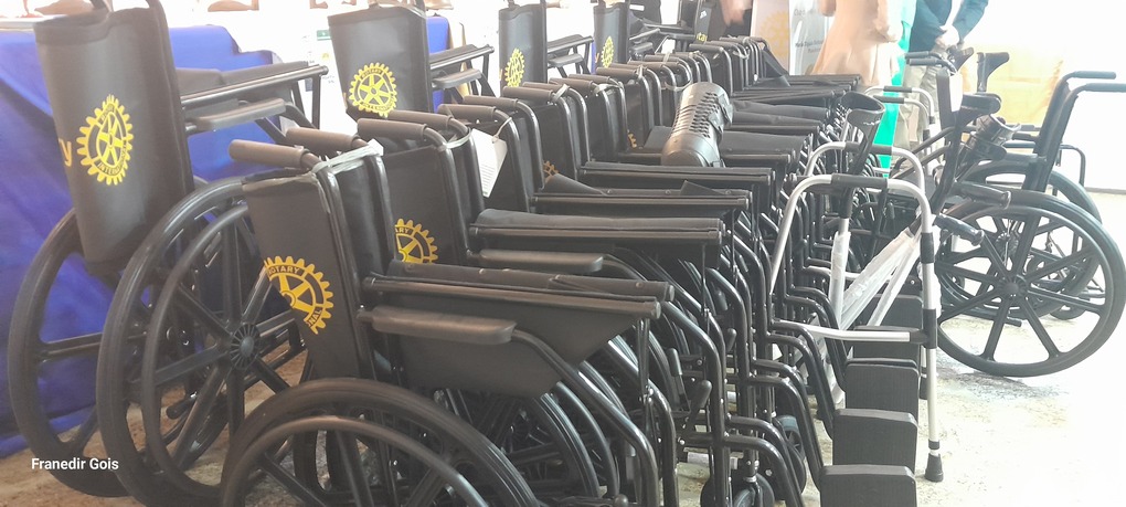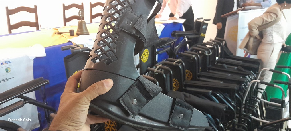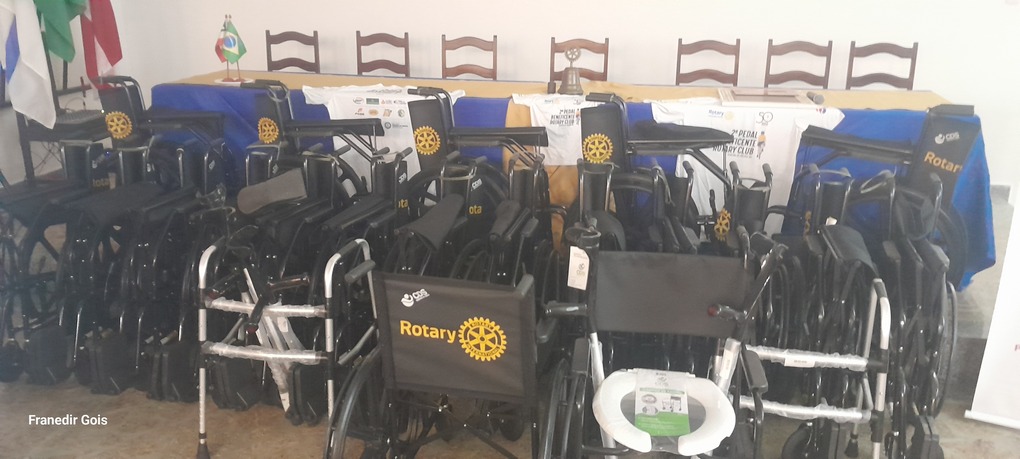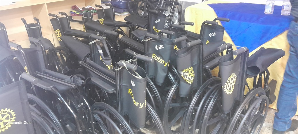 Rubens Ferraz, governador assistente fala das 40 cadeiras de rodas, das dez cadeiras de banho, dez andadores e dos dez pares de moletas.