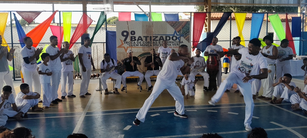Desenvolvimento Afetivo-Social: Promove o respeito mútuo, a cooperação, a disciplina e a interação social através da roda de capoeira.