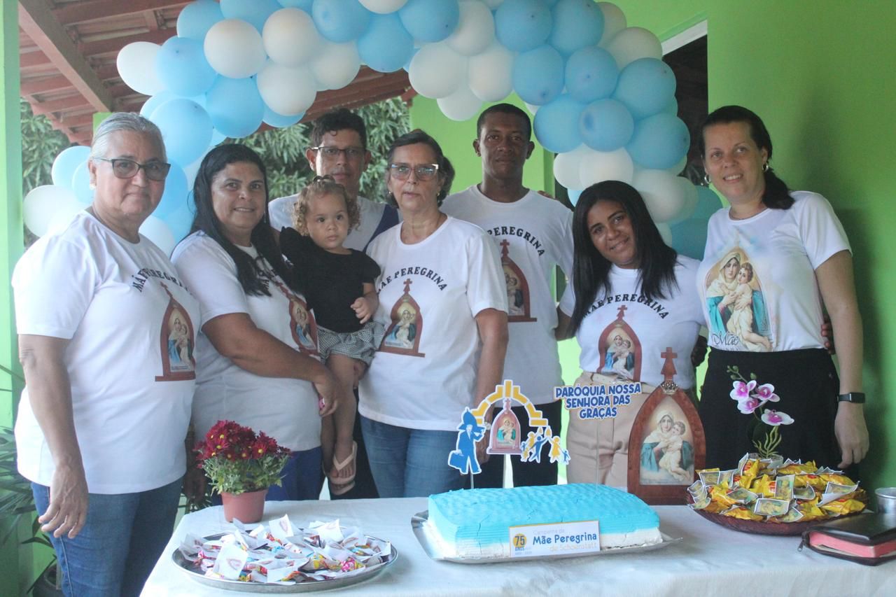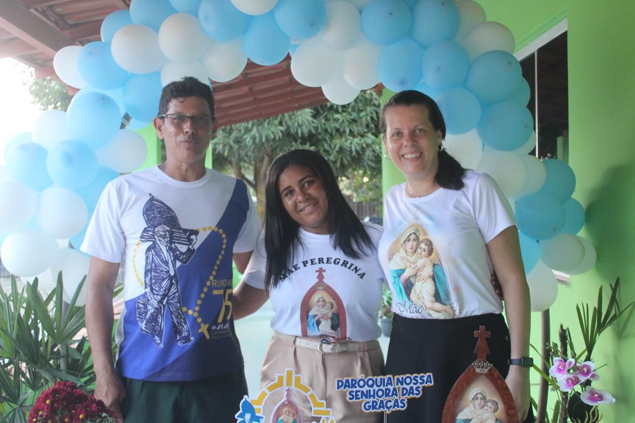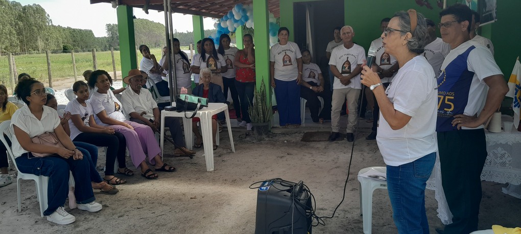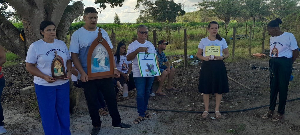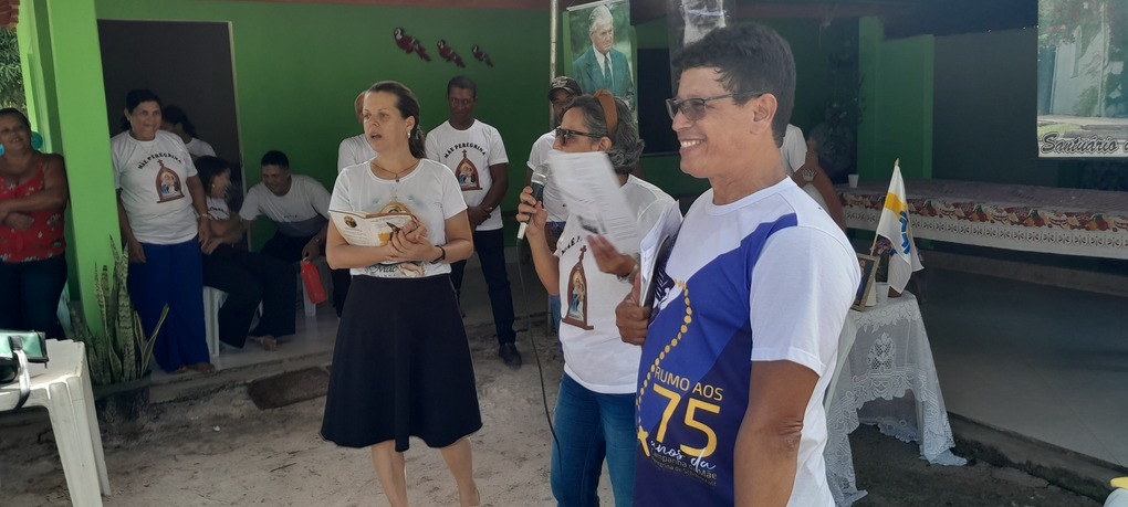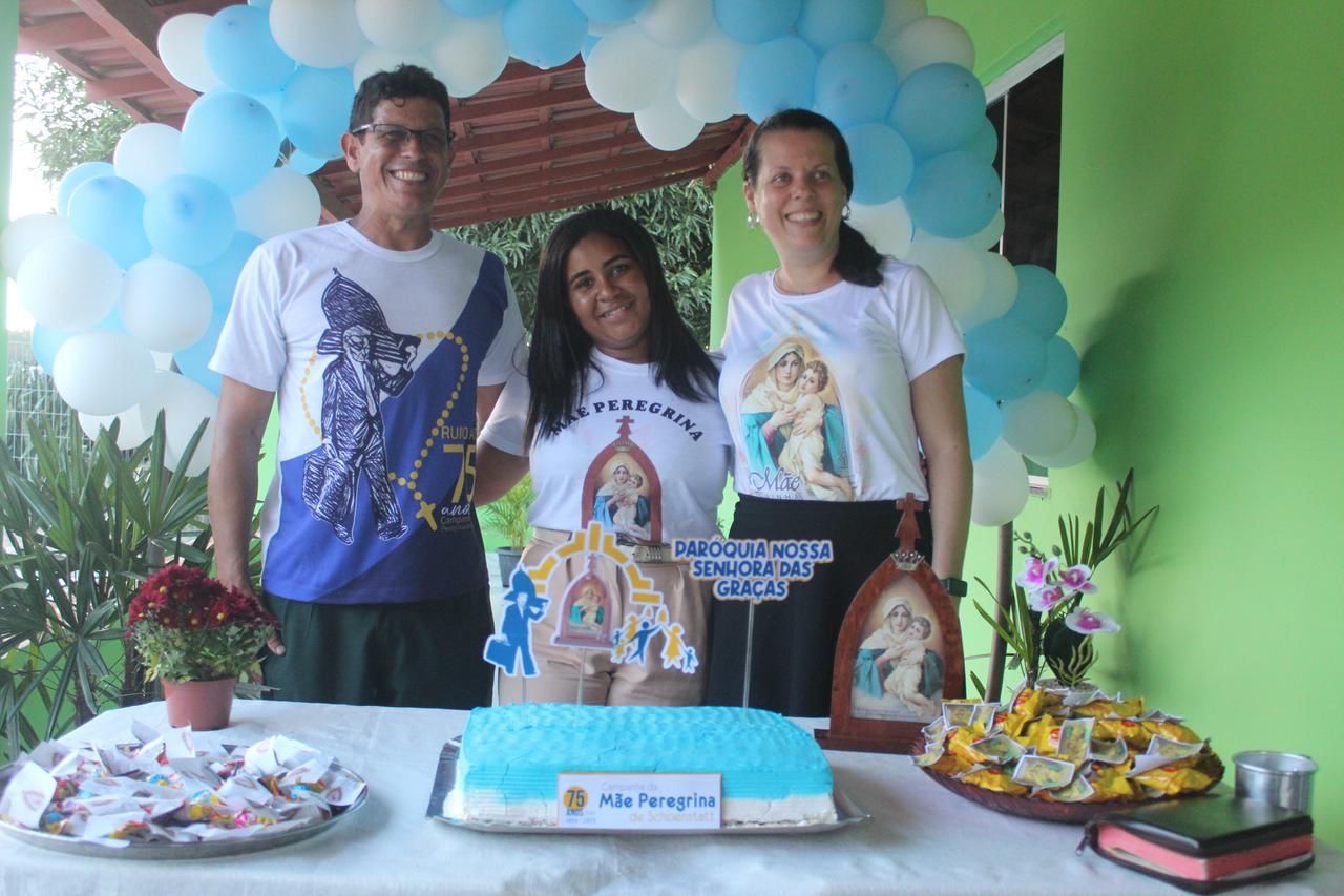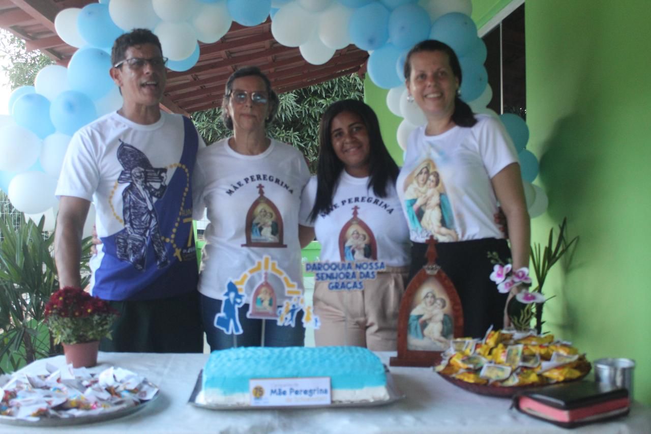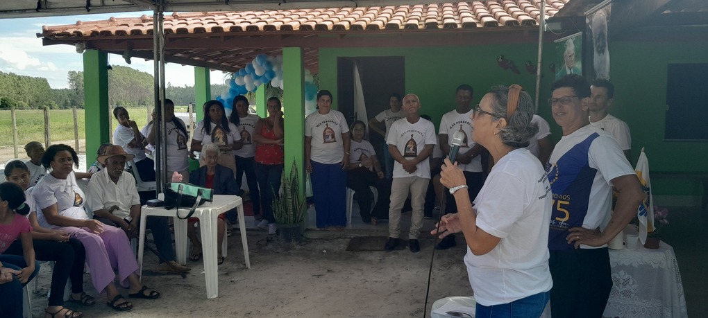 A coordenação da Paróquia Nossa Senhora das Graças, Teixeira de Freitas, Janaína e Elisvando, junto com representantes da Mãe Peregrina (Alceli – vice coordenadora diocese, Cláudio – coordenador da forania e outros) realizaram um grande retiro mariano na casa de Dona Vãnia, anfitriã que acolheu a todos com uma recepção singela e cheia de amabilidade. Para o retiro houve a união das comunidades: São Francisco Palmital, Córrego do Mutum, São Judas Tadeu e adjacência. O retiro foi esplendoroso, com palestras, animação, muita comida, muita fartura, lugar apropriado e muita devoção mariana. O mariano, Felipe, palestrou sobre (Ardor Pela Missão de levar a Mãe ao encontro dos Filhos). Cláudio falou sobre (Amor para servir/ lançar novas redes) a importância da Mãe Peregrina que vai de casa em casa abençoado a todos, principalmente os 30 membros de cada grupo. Alceli e Janaína protagonizaram os passos de João Pozzobon. Houve, também a encenação do abraço de Maria, representada pelas meninas do JAM (jovens Marianos em Ação – pertecem a Congregação Mariana, junto com Felipe) e Janaina. A participação de muitos missionários incluindo Nildo, Dona Benedita e outros novos membros da Mãe Peregrina.