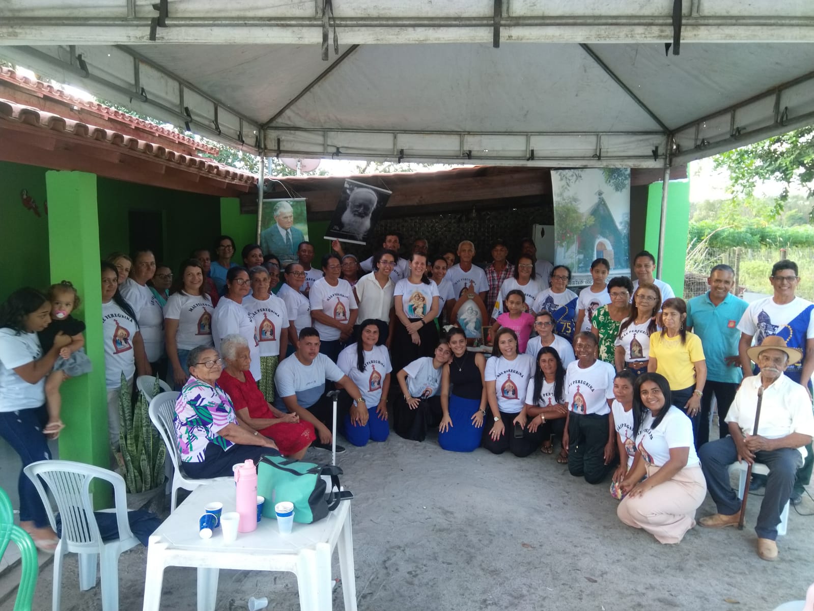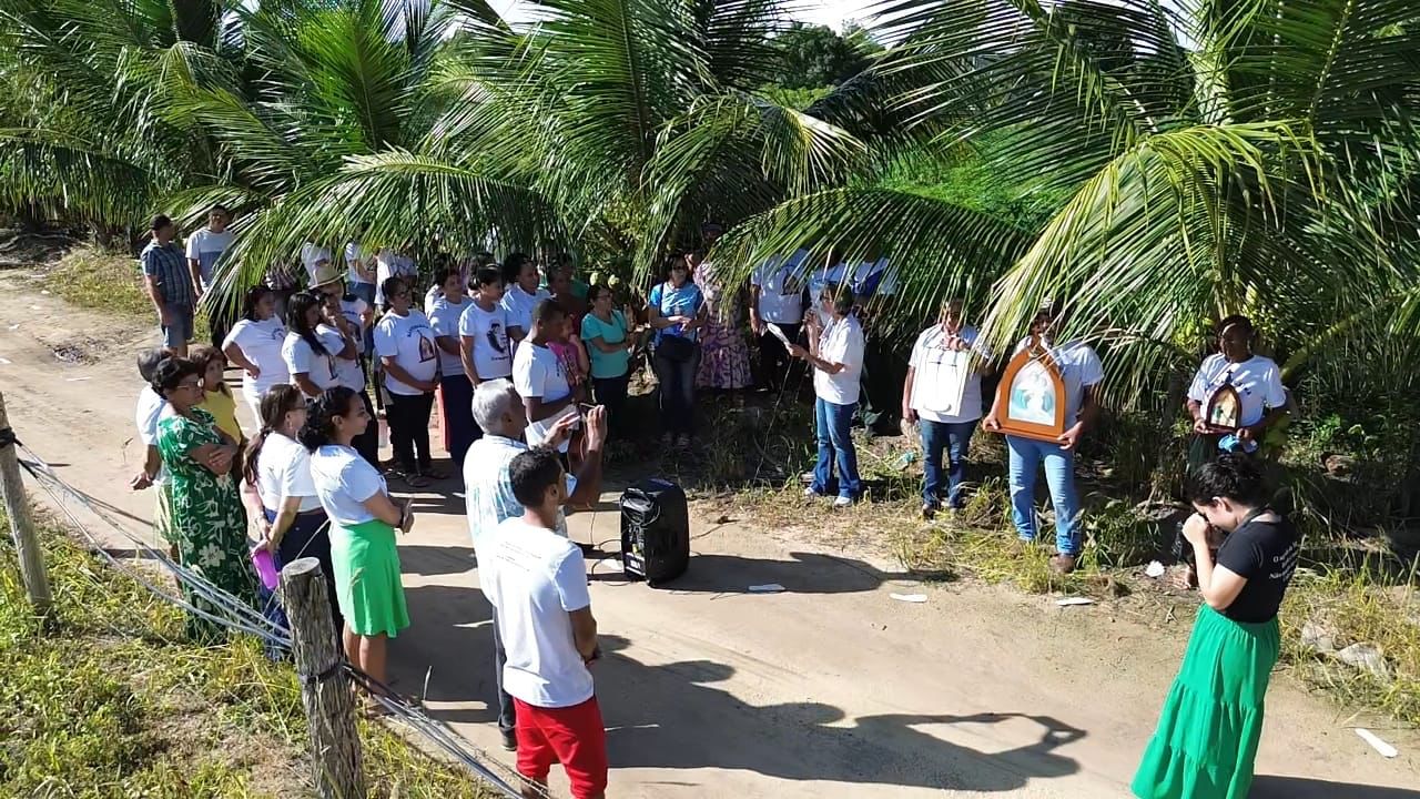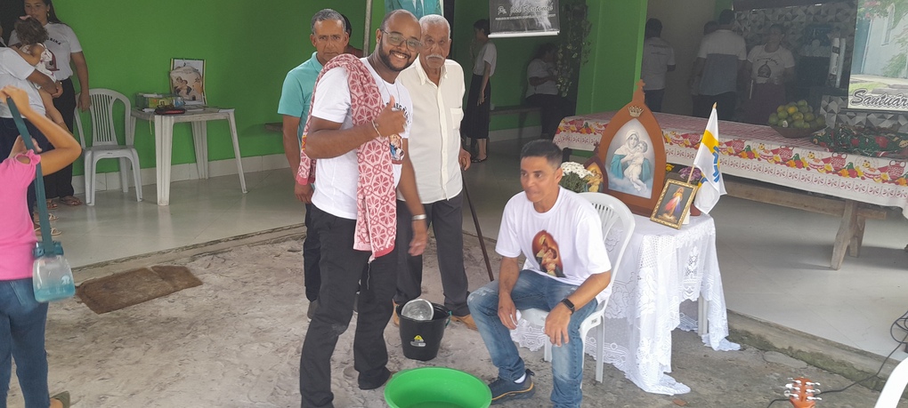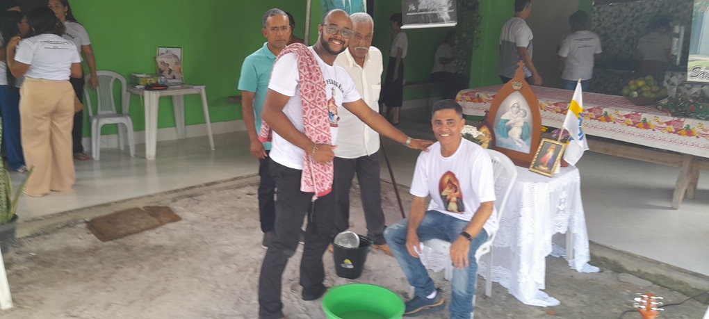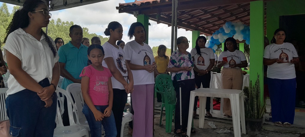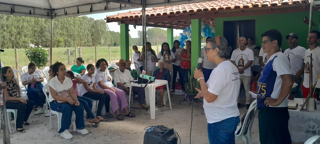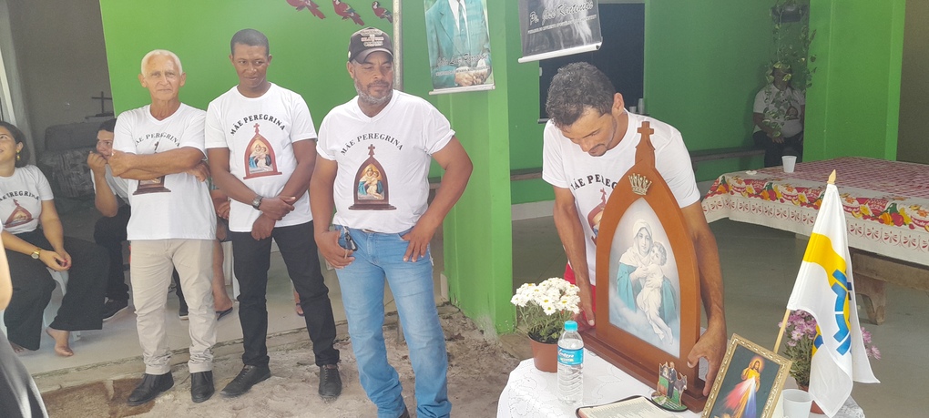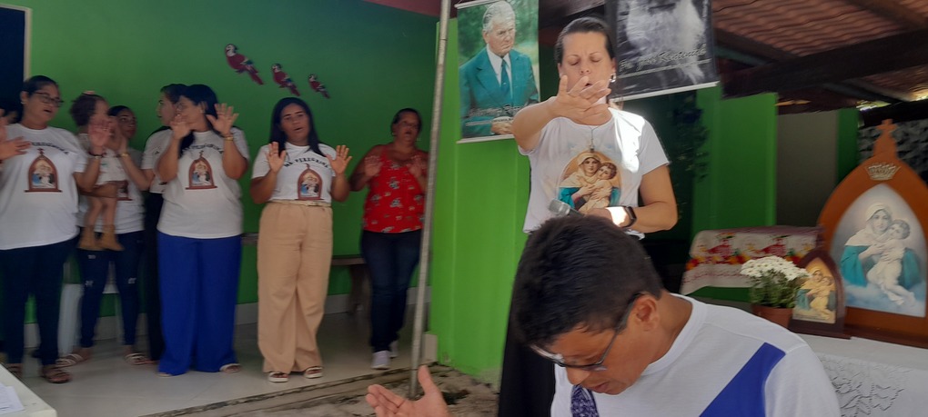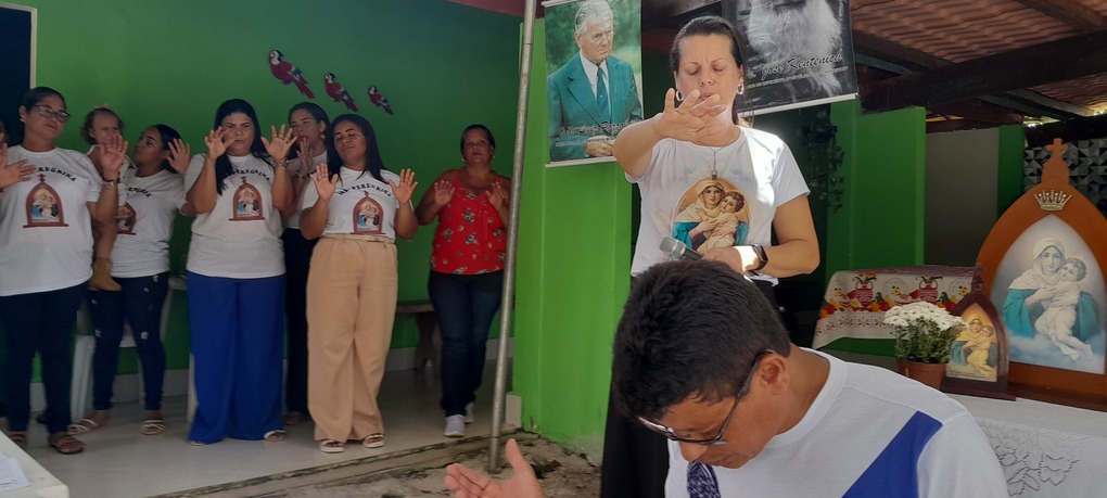 A coordenação da Paróquia Nossa Senhora das Graças, Teixeira de Freitas, Janaína e Elisvando, junto com representantes da Mãe Peregrina (Alceli – vice coordenadora diocese, Cláudio – coordenador da forania e outros) realizaram um grande retiro mariano na casa de Dona Vãnia, anfitriã que acolheu a todos com uma recepção singela e cheia de amabilidade. Para o retiro houve a união das comunidades: São Francisco Palmital, Córrego do Mutum, São Judas Tadeu e adjacência. O retiro foi esplendoroso, com palestras, animação, muita comida, muita fartura, lugar apropriado e muita devoção mariana. O mariano, Felipe, palestrou sobre (Ardor Pela Missão de levar a Mãe ao encontro dos Filhos). Cláudio falou sobre (Amor para servir/ lançar novas redes) a importância da Mãe Peregrina que vai de casa em casa abençoado a todos, principalmente os 30 membros de cada grupo. Alceli e Janaína protagonizaram os passos de João Pozzobon. Houve, também a encenação do abraço de Maria, representada pelas meninas do JAM (jovens Marianos em Ação – pertecem a Congregação Mariana, junto com Felipe) e Janaina. A participação de muitos missionários incluindo Nildo, Dona Benedita e outros novos membros da Mãe Peregrina.