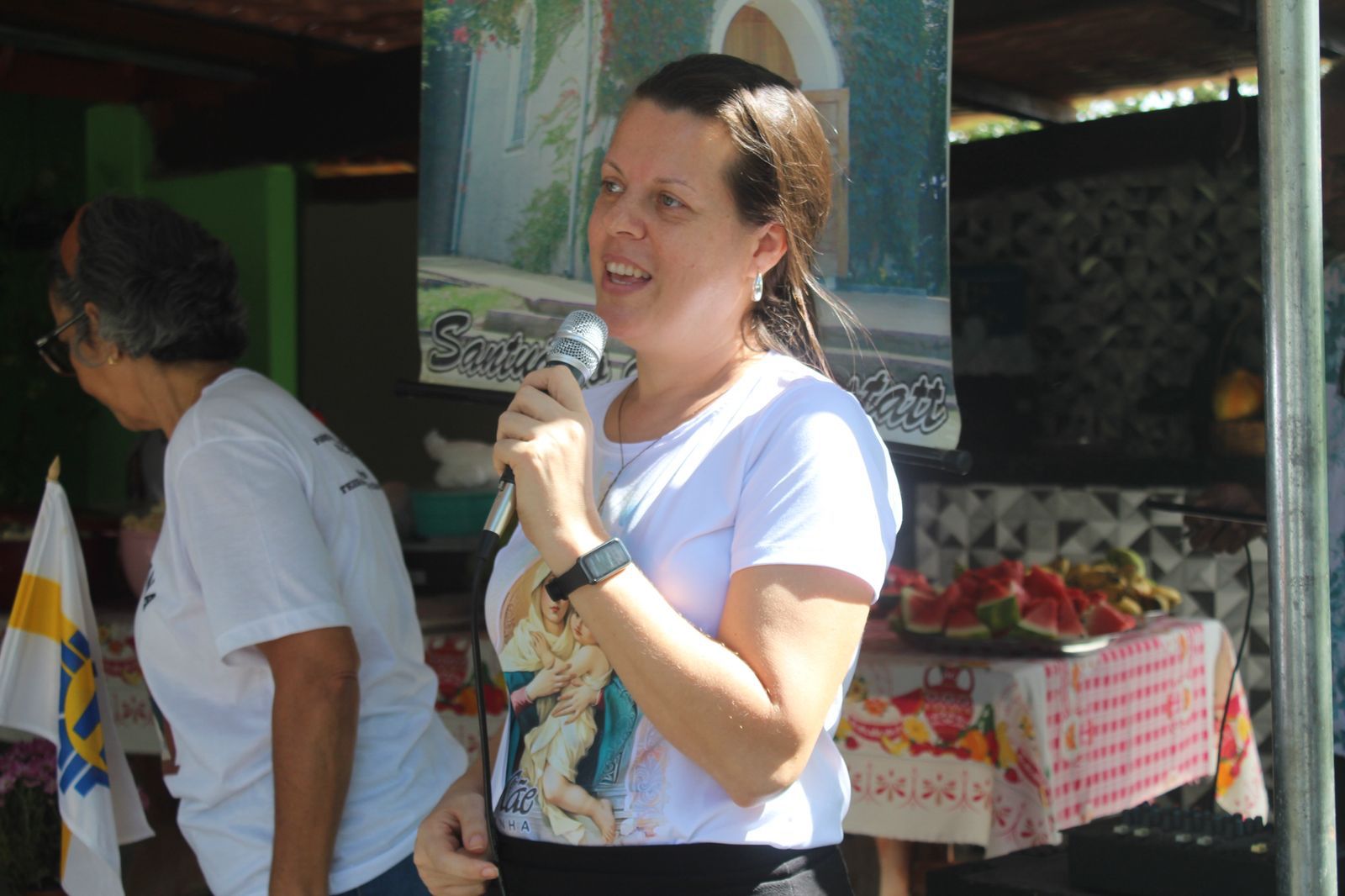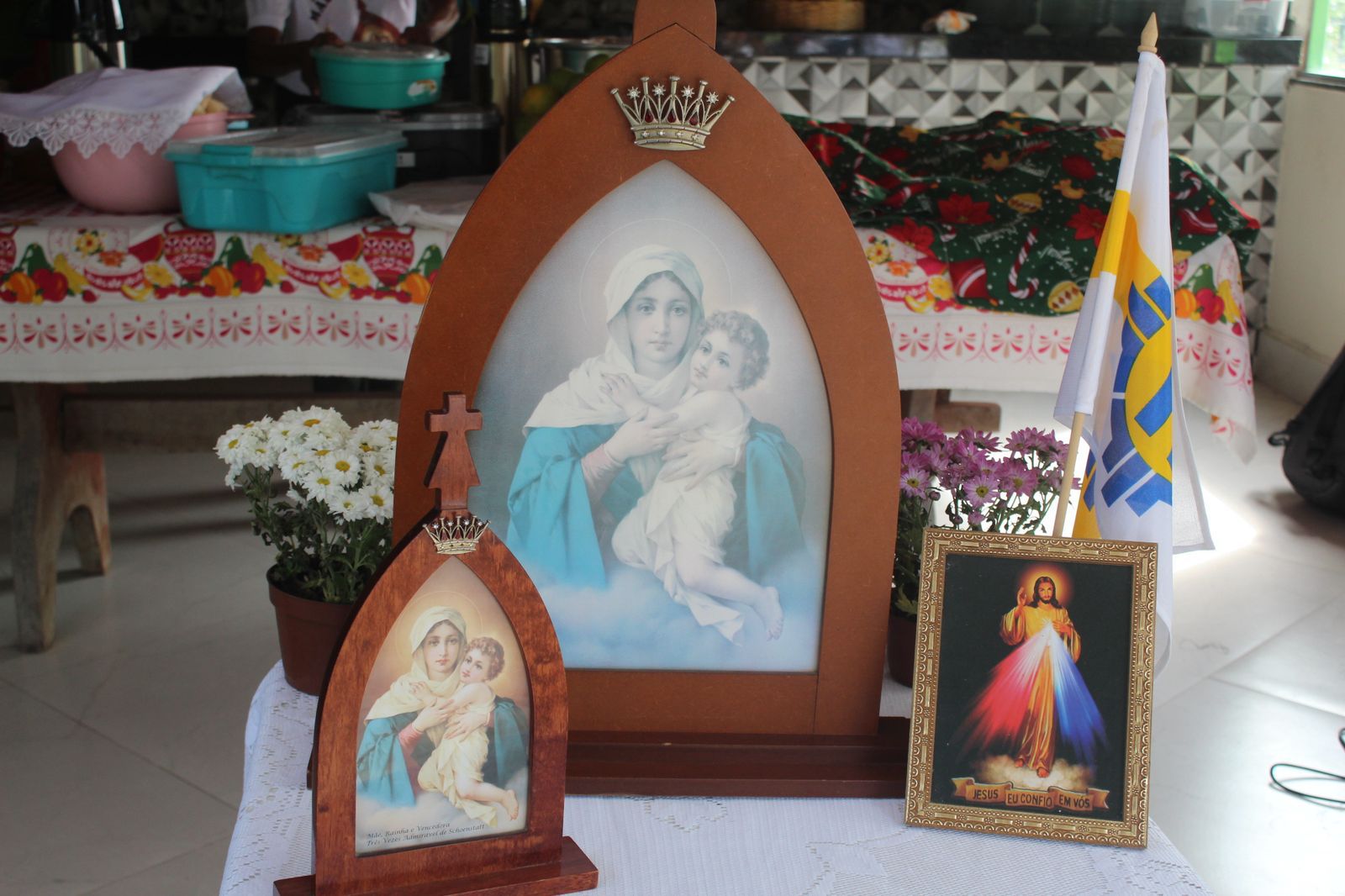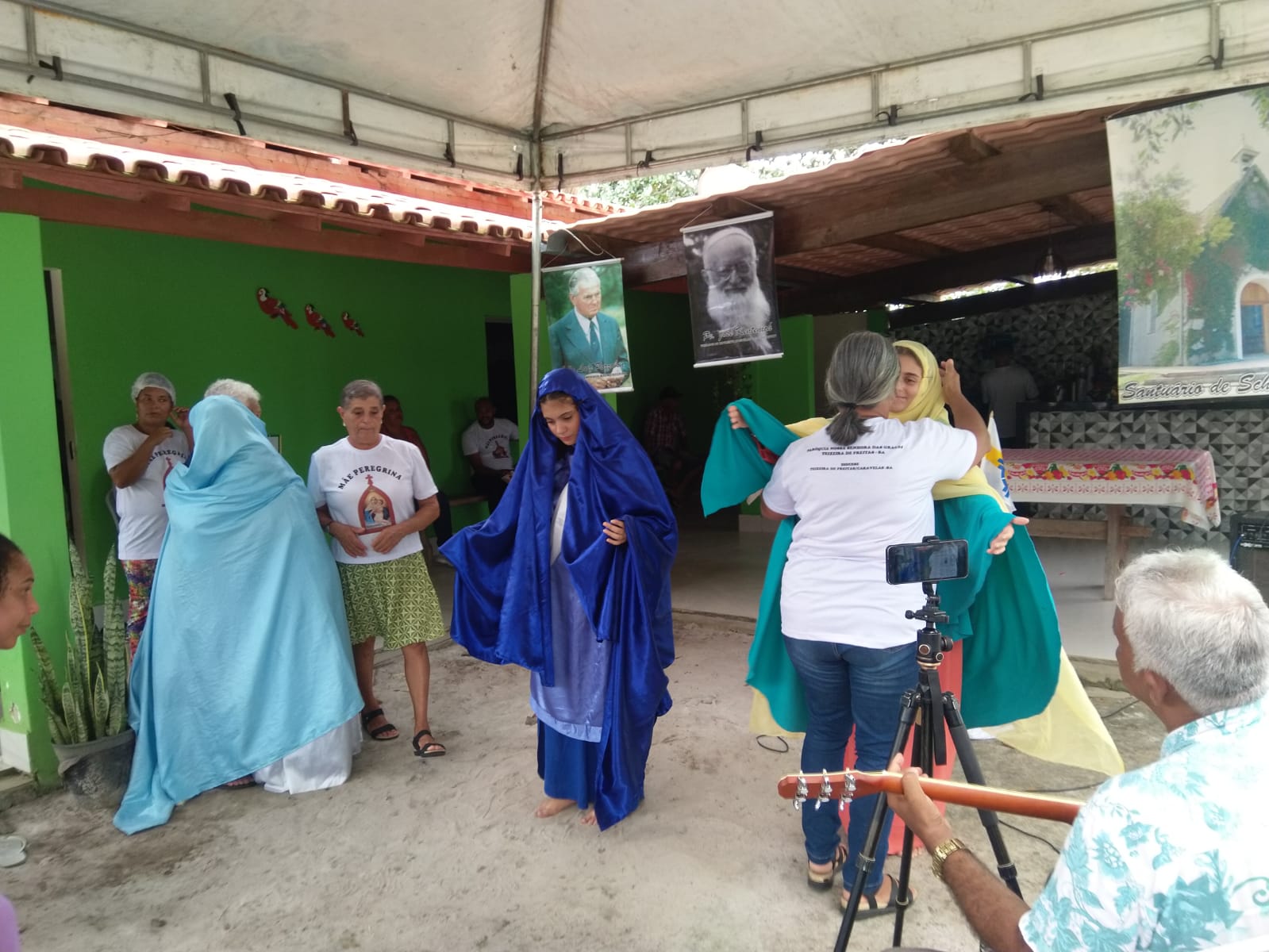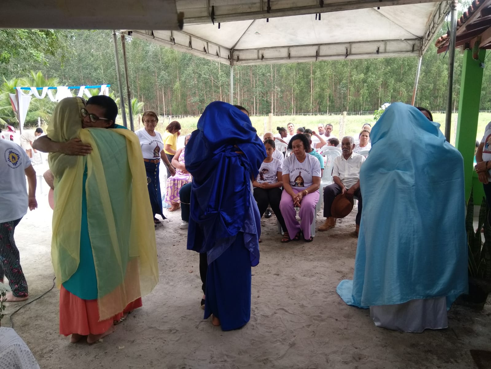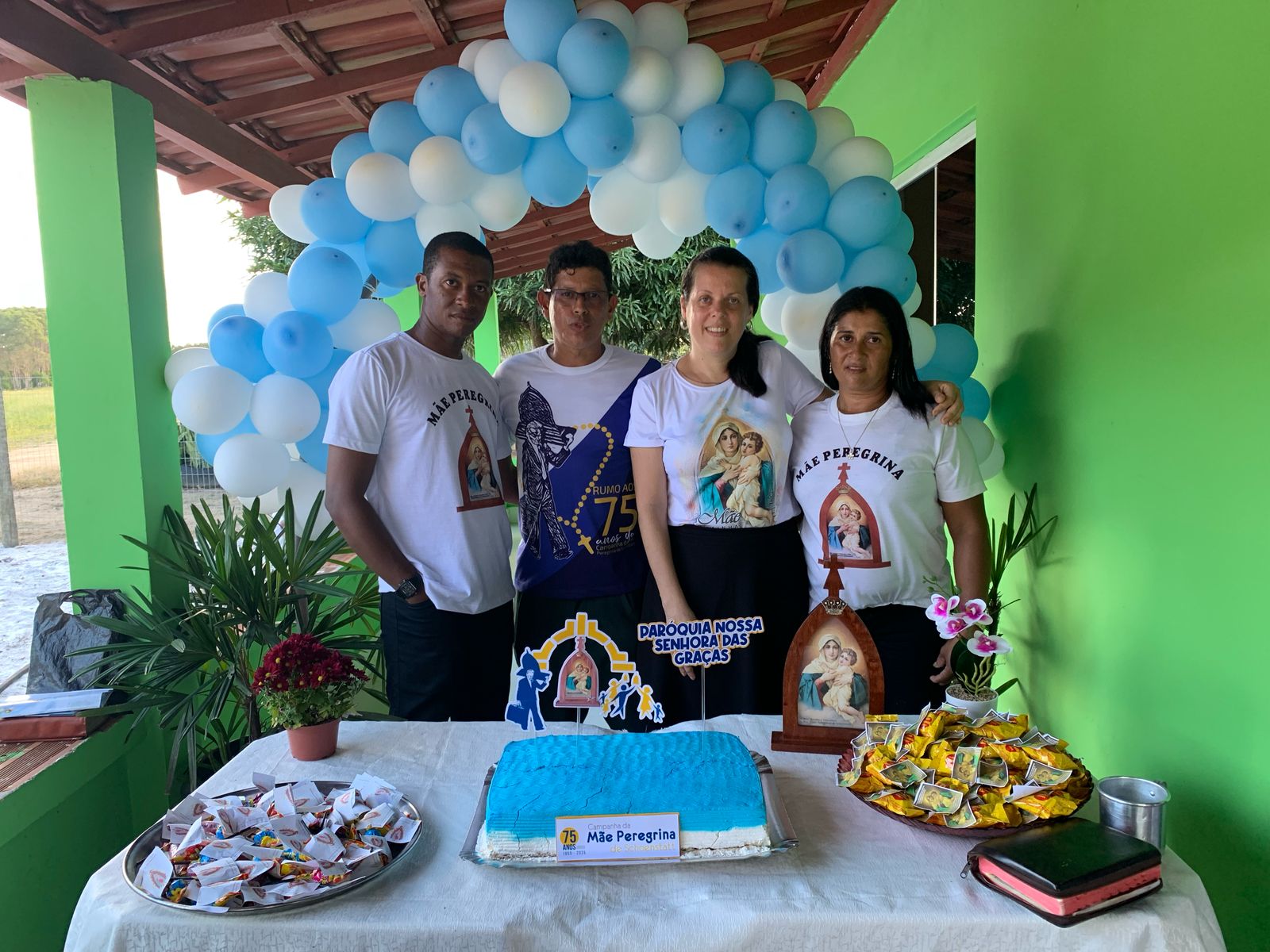 A coordenação da Paróquia Nossa Senhora das Graças, Teixeira de Freitas, Janaína e Elisvando, junto com representantes da Mãe Peregrina (Alceli – vice coordenadora diocese, Cláudio – coordenador da forania e outros) realizaram um grande retiro mariano na casa de Dona Vãnia, anfitriã que acolheu a todos com uma recepção singela e cheia de amabilidade. Para o retiro houve a união das comunidades: São Francisco Palmital, Córrego do Mutum, São Judas Tadeu e adjacência. O retiro foi esplendoroso, com palestras, animação, muita comida, muita fartura, lugar apropriado e muita devoção mariana. O mariano, Felipe, palestrou sobre (Ardor Pela Missão de levar a Mãe ao encontro dos Filhos). Cláudio falou sobre (Amor para servir/ lançar novas redes) a importância da Mãe Peregrina que vai de casa em casa abençoado a todos, principalmente os 30 membros de cada grupo. Alceli e Janaína protagonizaram os passos de João Pozzobon. Houve, também a encenação do abraço de Maria, representada pelas meninas do JAM (jovens Marianos em Ação – pertecem a Congregação Mariana, junto com Felipe) e Janaina. A participação de muitos missionários incluindo Nildo, Dona Benedita e outros novos membros da Mãe Peregrina.