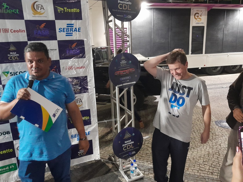 Adriano Gomes de Oliveira, fez compra no Supermercado Trento e ganhou um dos carros Mobi. Herivelton Faisal de Oliveira, fez a compra na Cleber Auto Peças e Walery Rodrigues, fez a compra na Boroto Calçados.