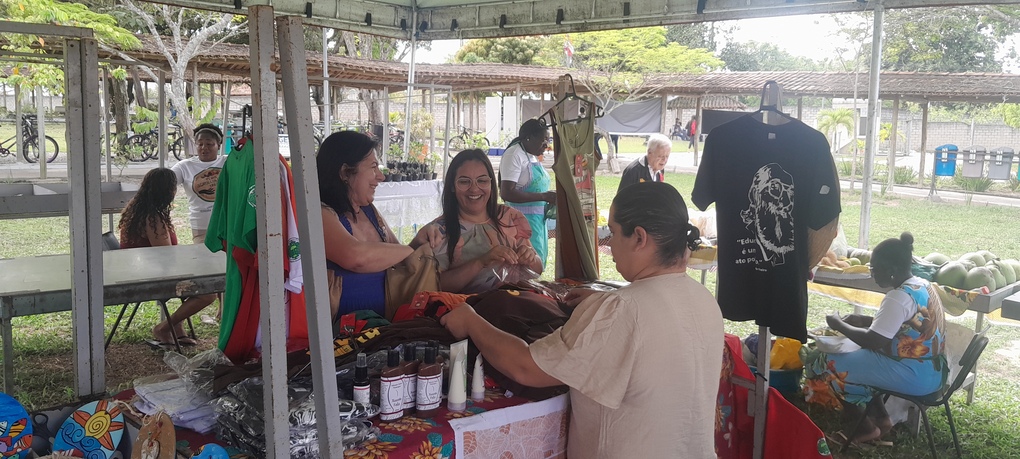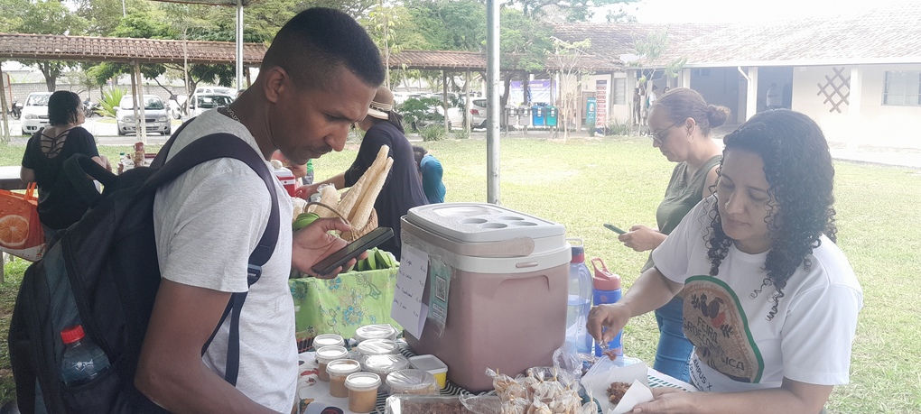 A cada mês acontece a Feira Agroecológica que engaja produtos da terra trazidos por famílias da agricultura familiar que vem de diversos municípios, de várias comunidades e assentamentos.